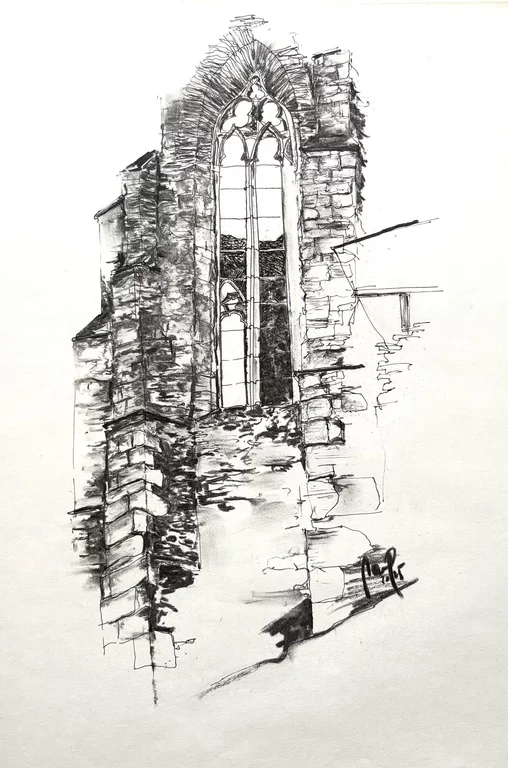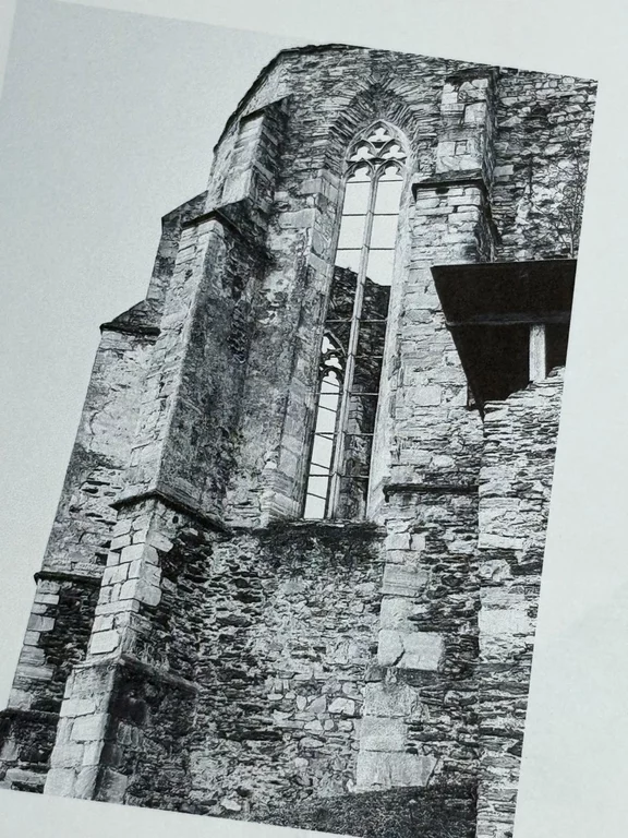 Von der ehemaligen Kirche einer ursprünglich befestigten Probstei aus 1233 sind - nach mehrmaligen Bränden und Zerstörungen - heute lediglich die Mauern des Chores sowie Reste der Maßwerkfenster erhalten.