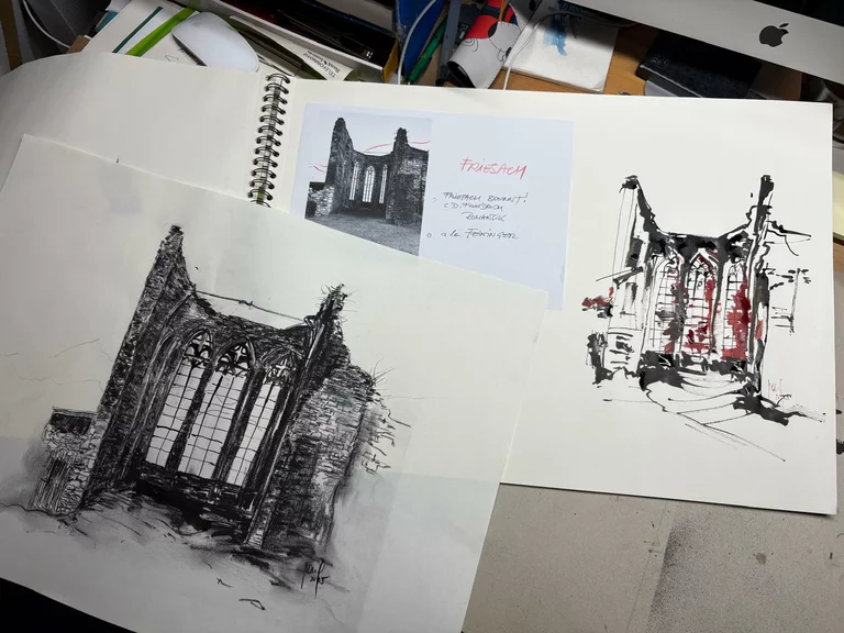 Es entstanden Skizzen vor Ort, die als solche auch nach der Heimkehr unverändert blieben.