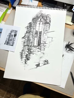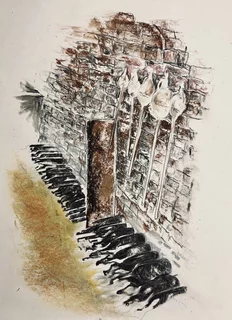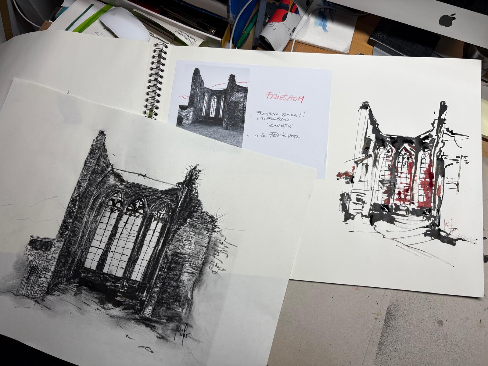 Ein Motiv - zwei unterschiedliche Arbeiten. Beide - geprägt durch den gemeinsamen Zeichenlehrer - haben sich weiterentwickelt.